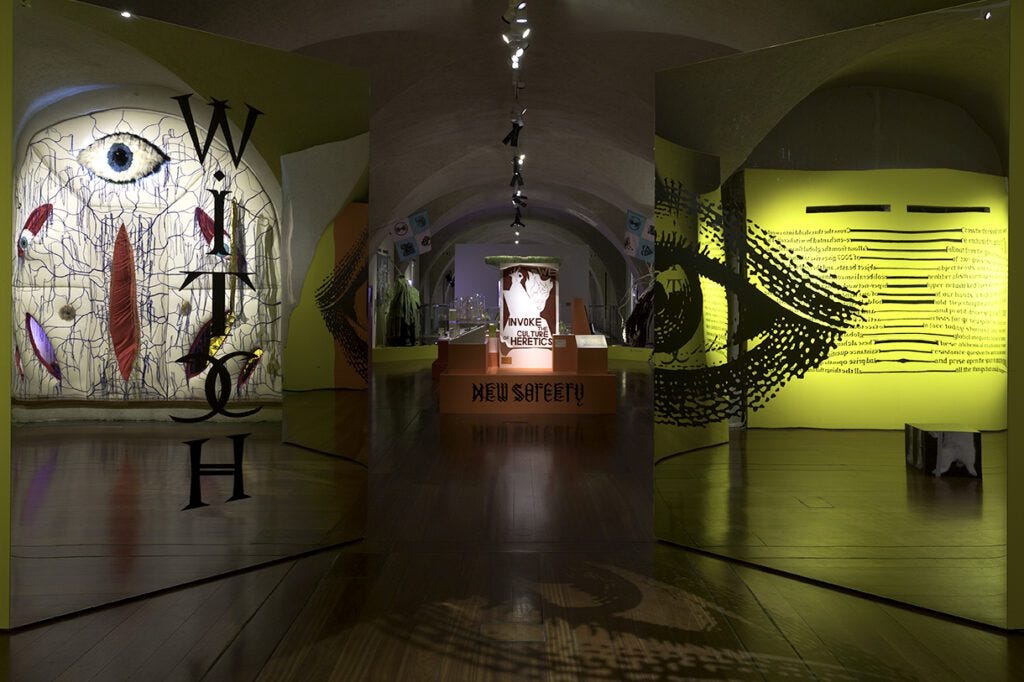 Finally, tracing history from the 2008 financial crisis to the present, the exhibition closes with the witch, positioning the younger generation as a hyper-connected coven, committed to the abandonment of the “patriarchal occult” and the “zombie doctrine of neoliberalism” with an emphasis on embracing bodily autonomy and a groundedness rooted in a climate justice-centred value system. In this final act, the curators highlight the potential of creative resistance for shaping our current reality and reimagining the future.